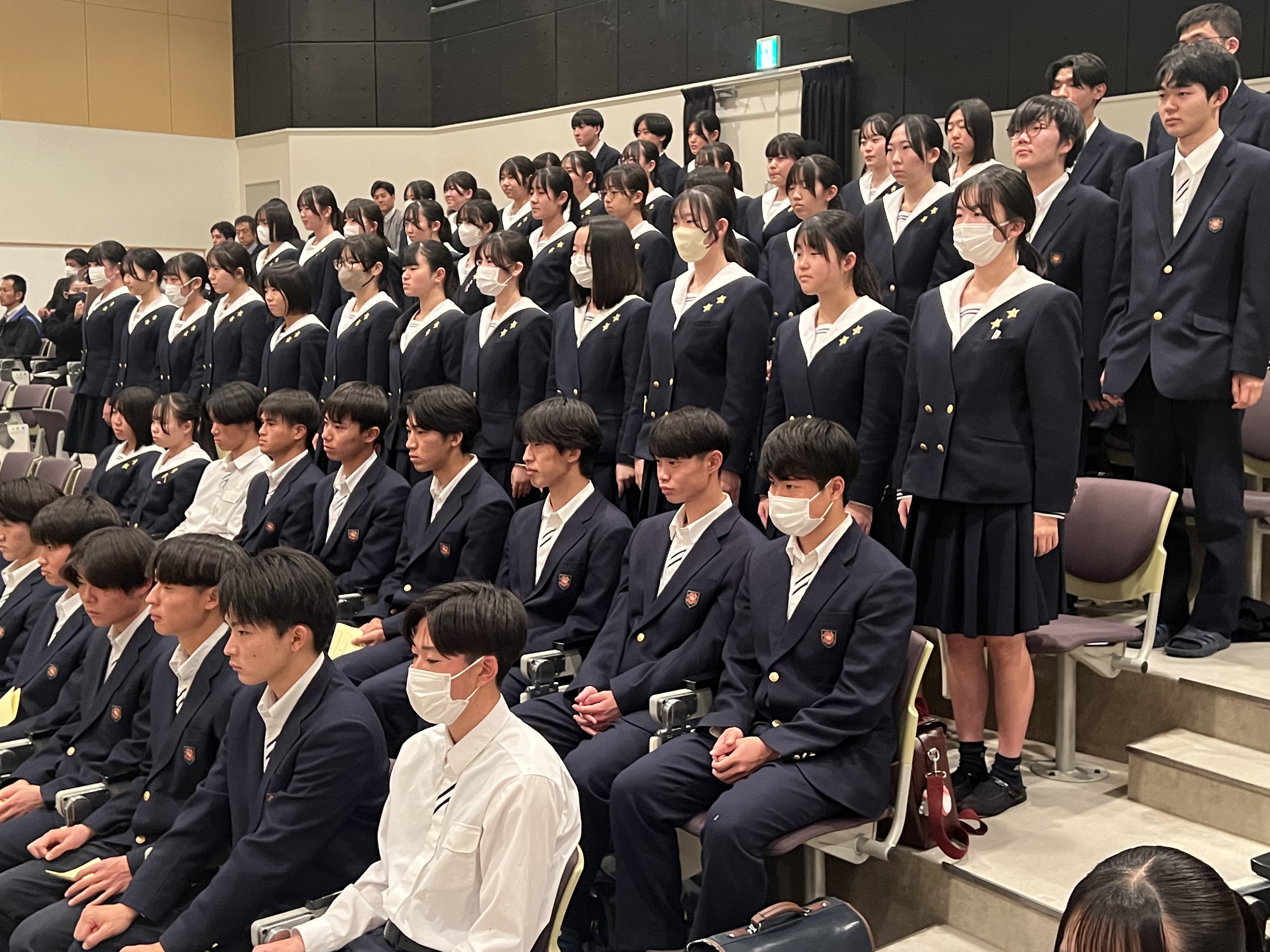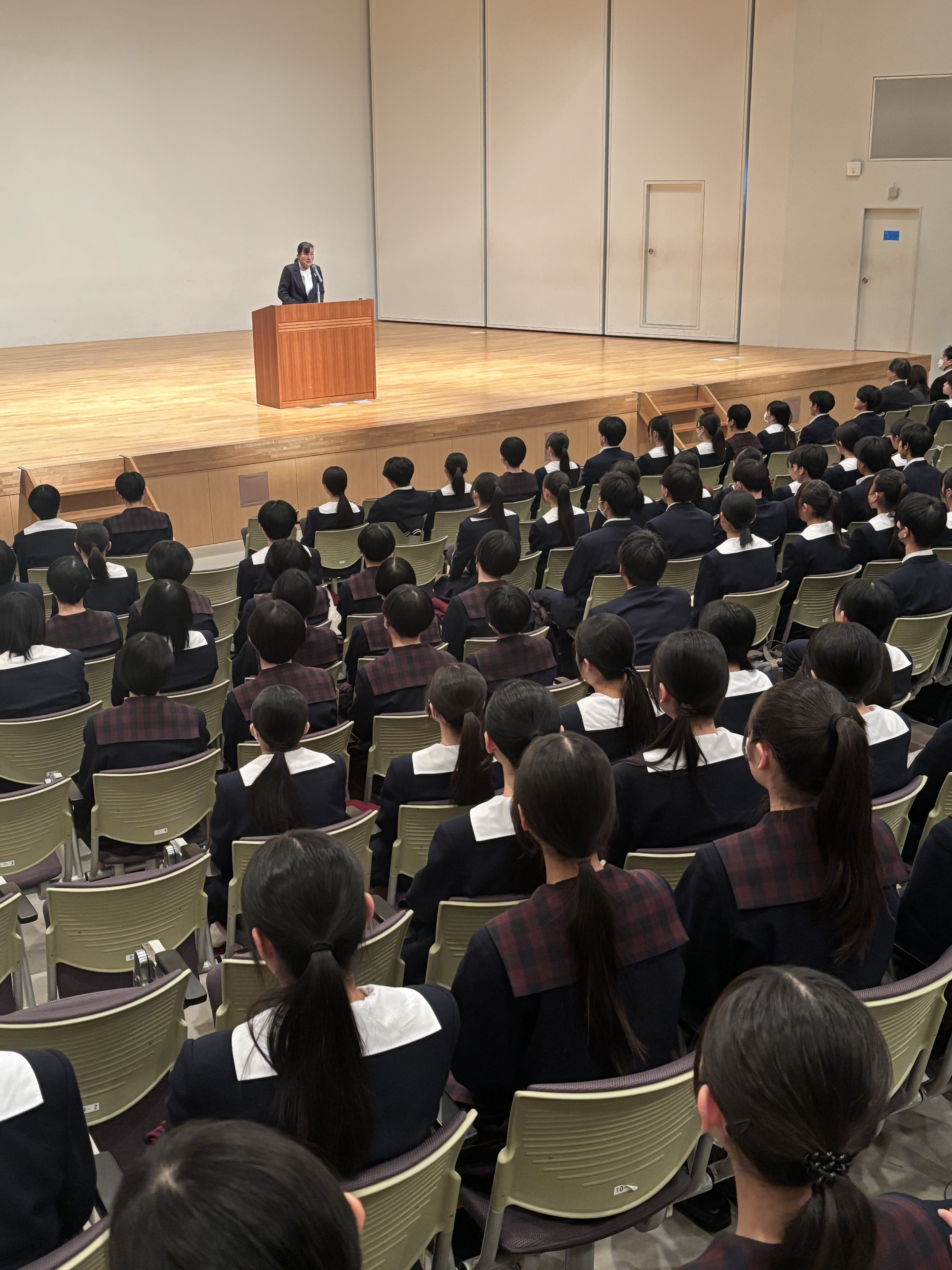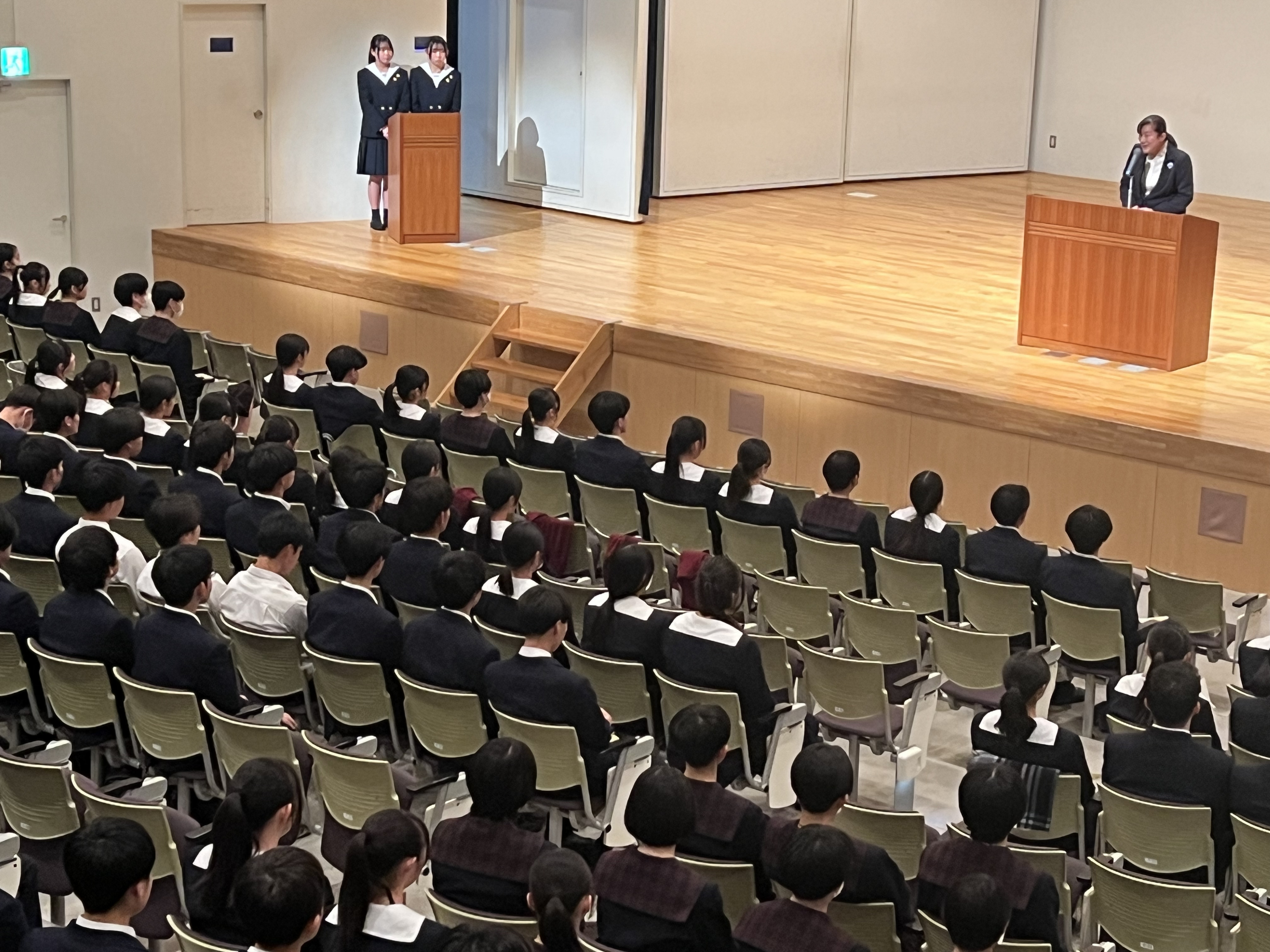 「目標に向けた努力と挑戦する姿勢が、学校全体に活気を与えている」というメッセージに、生徒たちは真剣な表情で耳を傾けていました。