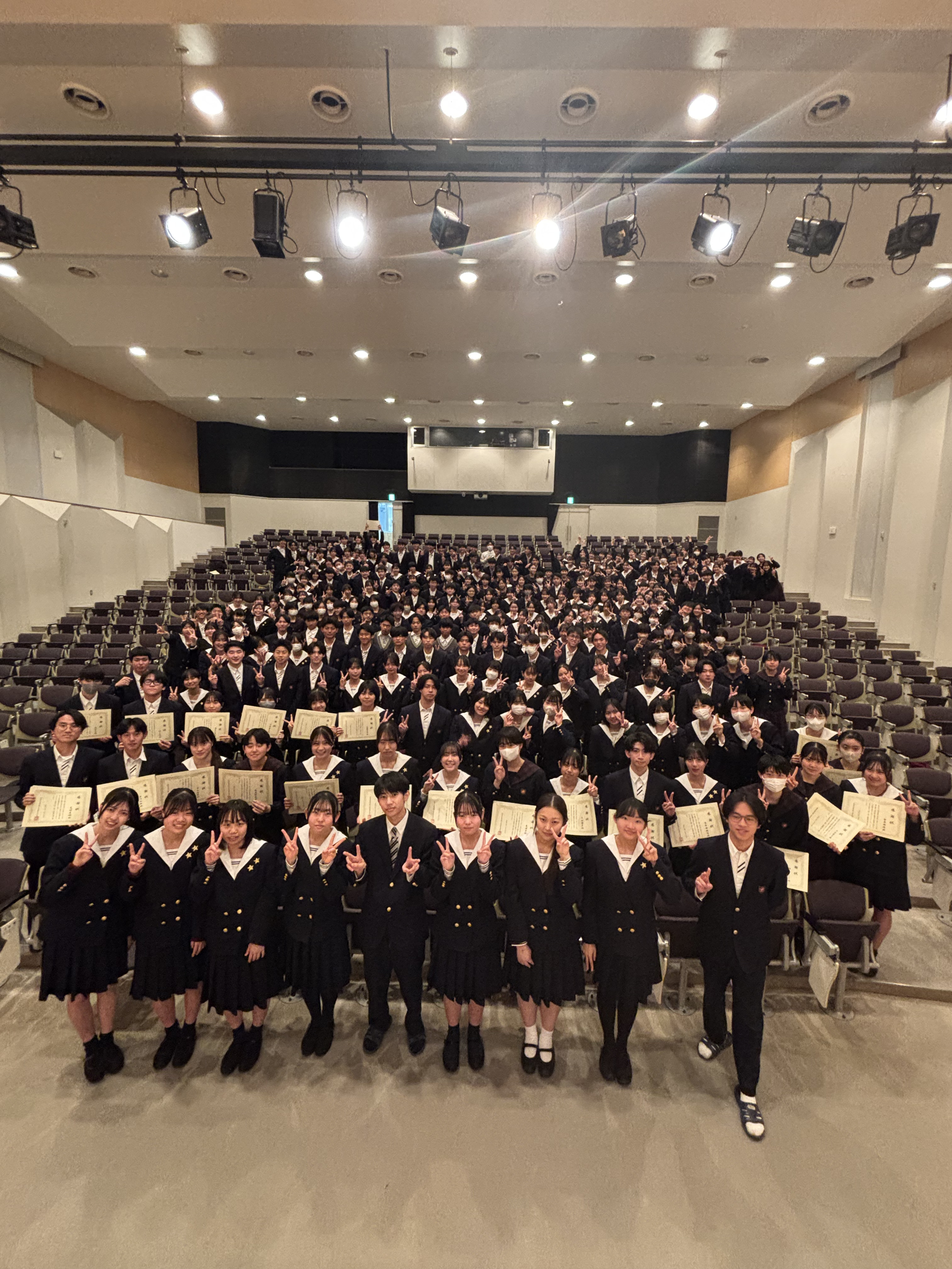 最後に参加者全員が晴れやかな笑顔で記念撮影。仲間たちと喜びを分かち合うその姿には、部活動を通じて培われた絆と達成感が表れていましたと思います。